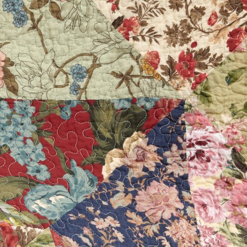 Charming floral prints combined with paisleys create this intricate patchwork quilt set. Each Antique Chic Bonus set is finely quilted with a vintage rose bound edge and back and comes with two stuffed decorative pillows. Reversible. Quilt is oversized for better coverage on today's deeper mattresses. Each set includes one quilt and two shams and two decorative pillows. One sham and one decorative pillow per twin set. Sizes: Twin 72-Inch by 90-Inch, Full/Queen 90-Inch by 90-Inch, King 105-Inch by 95-Inch, King Sham 20-Inch x 36-Inch.