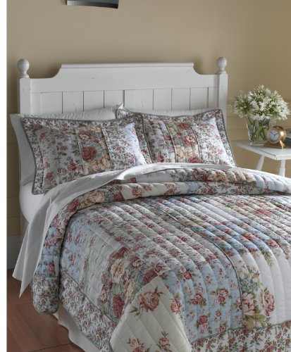 Create a sanctuary in your bedroom with beautiful handcrafted quilt ensembles from Hedaya. Patterns are reminiscent of times gone by and provoke a sense of warmth and comfort. Beautiful prints are expertly handcrafted and pieced, to create an heirloom quality collection that you will enjoy for years to come. Large rose traditional florals in blues, whites and reds and sage are combined in a unique block pattern. Set includes quit, two standard shams (one sham with twin size). 100-percent cotton with poly fill; machine wash. Imported.