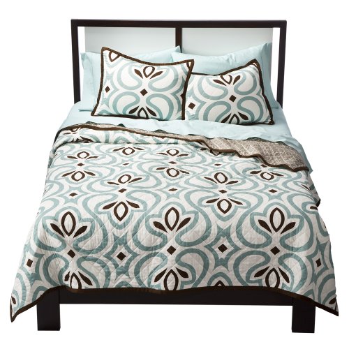 This DwellStudio® for Target® quilt is a wonderful addition to any bedroom. It features a Moroccan-inspired, brown and teal design on a cream background, giving the quilt a contemporary look.