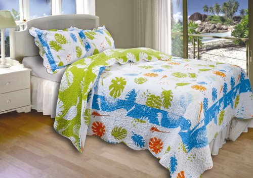 Bring a tropical paradise into your bedroom with the Coastal Breeze quilt set. Generously cut for extra coverage, the Coastal Breeze quilt sets is made from 3 inviting coastal prints and is truly reversible with an all-over print on the back. Face and Back: 100-percent Cotton. Fill: 100-percent Cotton. Easy care machine washable Coastal Breese features updated colors. Each quilt set includes 1 quilt and 2 pillow shams (1 sham per Twin set). Sizes: Twin 68-Inch by 88-Inch, Full/Queen 90-Inch by 90-Inch, King 105-Inch by 95-Inch